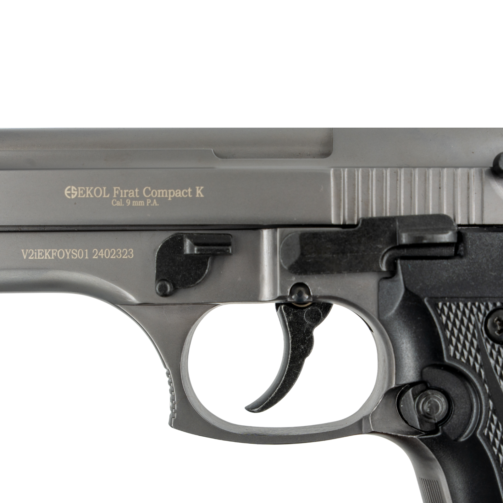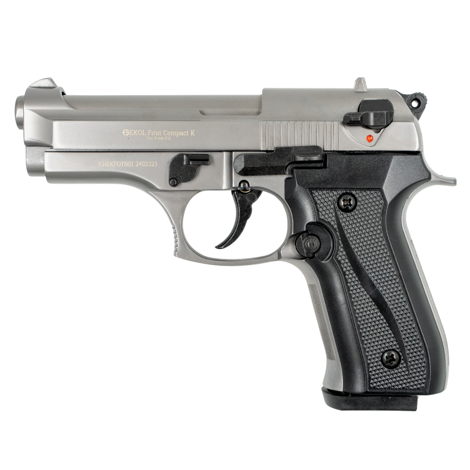 La EKOL Firat Compact es una pistola traumática semiautomática que destaca por su diseño robusto, compacto y altamente disuasorio. Fabricada con materiales de calidad y calibrada para cartuchos 9mm P.A.K., es una excelente opción para quienes buscan una herramienta de defensa personal no letal, confiable y de aspecto realista.