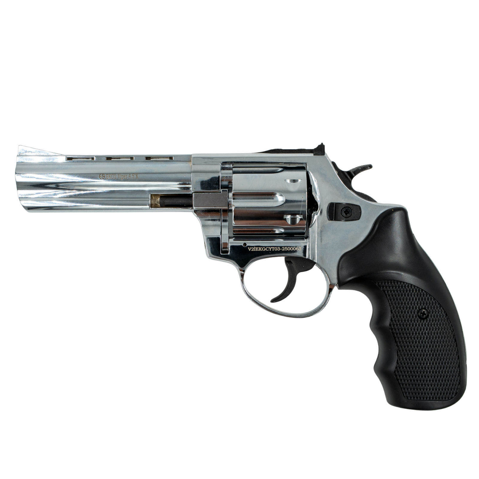 El EKOL VIPER 4.5 es un revólver traumático de doble acción, diseñado para quienes buscan una herramienta de defensa personal con estilo clásico, alto impacto visual y funcionamiento confiable. Su diseño tipo revólver aporta presencia disuasoria, mientras su funcionamiento con cartuchos 9mm R.K. garantiza una respuesta potente y legal sin riesgo letal.