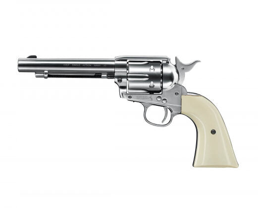 Disfruta de una experiencia de tiro precisa y potente con balines BB de calibre .45 a una velocidad de hasta 120 m/s. Su tambor de 6 rondas y su seguro manual te permiten disparar con confianza. Fabricado en metal y ABS, con empuñadura de madera sintética, ofrece un manejo cómodo y una estética realista. Perfecto para tiro al blanco, plinking o como pieza de colección. No es un arma de fuego, solo dispara balines BB de CO2. Rememora la época de los vaqueros con este clásico revólver Umarex.